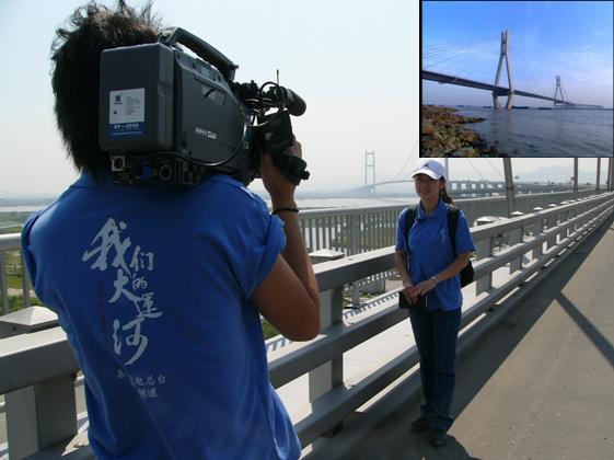 当我下车,走在大桥上,宽阔的长江在我脚下,前后都是平直、坦荡的桥面,望不到边,汽车不停地从身边开过,而长江中的千吨货轮,看起来是那么真切,江风呼啦啦吹过来,阳光有点晃眼,一种兴奋的情绪不由得渗进我现场解说中。尽管我还没有看到运河,但我知道,它就在前方等着我。
